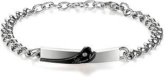 Schmuck Freundschaftsarmband, Lieben Valentinstag Paar Geschenke, Forever Love Gravur Flügel Spindrift Panzerkette Partner Armband, Zirkonia Edelstahl, Rose Gold Schwarz Silber