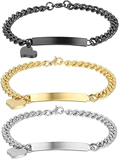 Personifizieren Schmuck Herren Damen Armband mit Gravur, Lieben Freundschaftsarmband, Glänzend Poliert, Edelstahl, Silber/Rose Gold