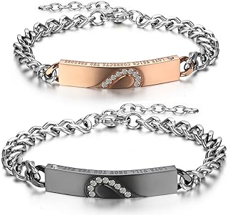 Schmuck Paar Love Herz Armband mit Gravur Edelstahl Bicolor Armbänder, schwarz Silber partnerarmband mit Zirkonia für Lieben Partner