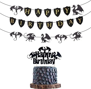 2 PCS Dragon Cake Dekoration Dragon Geburtstag Banner Dragon Geburtstagsfeier Dekoration Dragon Geburtstagszubehör Dragon Party Picks Fantasy Party
