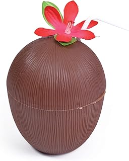 Bristol Novelty BA503 Kokosnussbecher Blume und Strohhalm, Unisex-Erwachsene, braun, Einheitsgröße