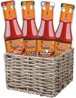 Curry Paules Geschenkkorb – DAS Neuköllner Original: Ketchup, Steak Ketchup & Hot Chili Ketchup in hochwertigem Präsentkorb