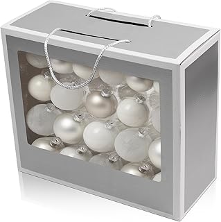 Multistore 2002 42tlg. Christbaumkugeln Set Ø5/5,5/6,5cm Glaskugeln Weihnachtskugeln Christbaumschmuck Baumschmuck Dekokugeln Weiß/Silber