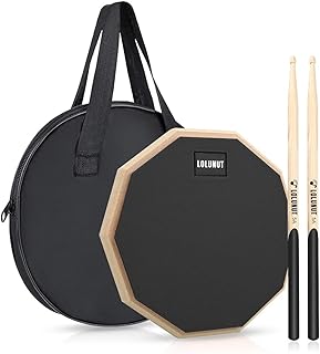 LOLUNUT Dumb Drum Practice Pad, 2-seitig leises Übungspad, weicher Gummi, Holzsockel, mit Massivholz-Drumsticks und Übungspad Aufbewahrungstasche