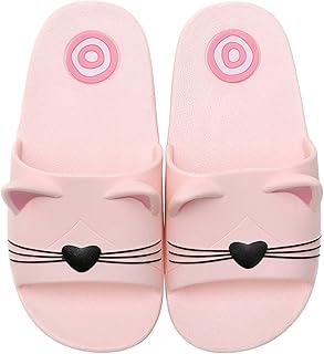 Pantoletten Kinder Mädchen Hausschuhe Badelatschen Dusch- und Badeschuhe rutschfest und Leicht Strand Slipper Flache Sandalen, Pink Katze, 25/26 EU