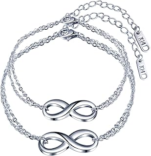 Paar Edelstahl Armband, Infinity Symbol Armreif Armbänder für Herren und Damen, verstellbare Armbänder, Silber, Weihnachten Geburtstag Geschenk(Zwei Armbänder)