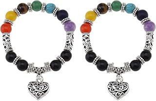 Armbänder 2 Stück 7 Chakren Yoga Armband Paar Herz Armband Set Armbänder 7 Farben Chakra Perlen 10mm Perlen Elastisches Seil Armreif Metall Männer Frauen