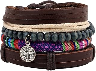 Unisex Geflochten Leder Armbänder Charms verstellbar Multi Strand Armband Armbänder Holz Perlen geflochten Handgelenk