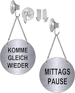 Desi-Schilder Mittagspause-Komme gleich Wieder-Alu.-Edelstahloptik-Wendeschild-Infoschild-Hängeschild-Schild-130 mm Ø-Mit Kettchen (139-15 - mit Saughaken)