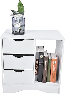 Ejoyous Nachttisch mit 3 Schubladen, MDF-Holzmaterial Nachtschrank Nachtkommode Ablagetisch Schublade Schlafzimmertisch mit 1 offenen Speicherplatz für Boxspringbett Beistelltisch Sofatisch