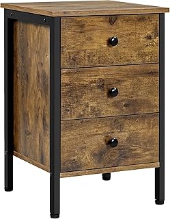 Yaheetech Nachttisch Nachtschrank Nachtkonsole für Boxspringbett, Nachtkommode Beistelltisch Sofatisch mit 3 Schubladen, 60cm hoch, vintagebraun-schwarz