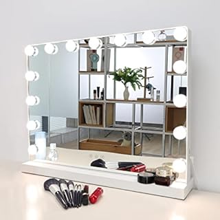 Dayu beleuchtete Hollywood Spiegel Schminkspiegel mit Beleuchtung und Touch Control Hollywood-Stil Make-up Kosmetikspiegel mit Lichtern, Tabletop Beleuchteter Kosmetikspiegel Weiß 15 Glühbirnen