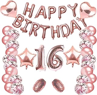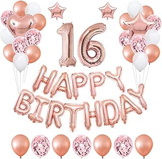 onehous 16. Geburtstag Luftballons Dekorationen Set Roségold Party Dekorationen Briefe Alles Gute zum Geburtstag Luftballons Dekorationen Folie Latex Luftballons Dekorationen für Mädchen Frauen Party