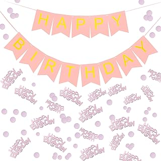Geburtstagsfeier Dekoration Set,Rosa alles Gute zum Geburtstag Banner schimmernden Buchstaben,Schwalbenschwanz Flagge alles Gute zum Zeichen,Geburtstag Konfetti Runde Tischdekoration (Rosa-roségold)