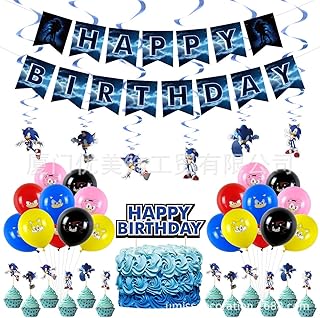 smileh Geburtstag Dekorationen Sonic the Hedgehog Luftballons Alles Gute Zum Geburtstag Banner Hängen Wirbel Dekorationen für Kinder Geburtstagsfeier Dekorationen