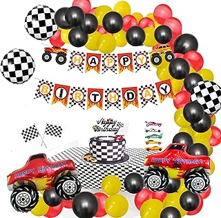 Rennwagen Geburtstag Party Deko Geburtstagsfeier Dekorationen Zwei schnelle Rennwagen Geburtstagsfeier liefert Monster Truck Ballons Alles Gute zum Geburtstag Banner Cake Topper