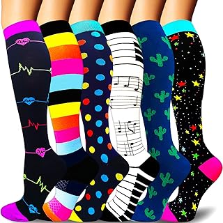 Kompressionsstrümpfe für Damen und Herren, 20-30 mmHg, ideal für Laufen, Reisen, Radfahren, Schwangerschaft, Krankenschwestern, 6 Paar