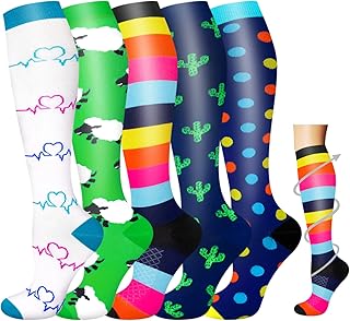5 Paar Kompressionsstrümpfe Kniestrümpfe Stützstrümpfe Laufsocken für Damen & Herren, Sport, Laufen, Flug, Reisen, Schwangerschaft, Medizinische Kompressionssocken